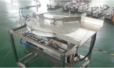 કામદાર બોટલનાં ફીડિંગ ટેબલ પર બોટલ મૂકીને, પછી કોષ્ટક બોટલને કન્વેયર પટ્ટામાં ખવડાવશે.